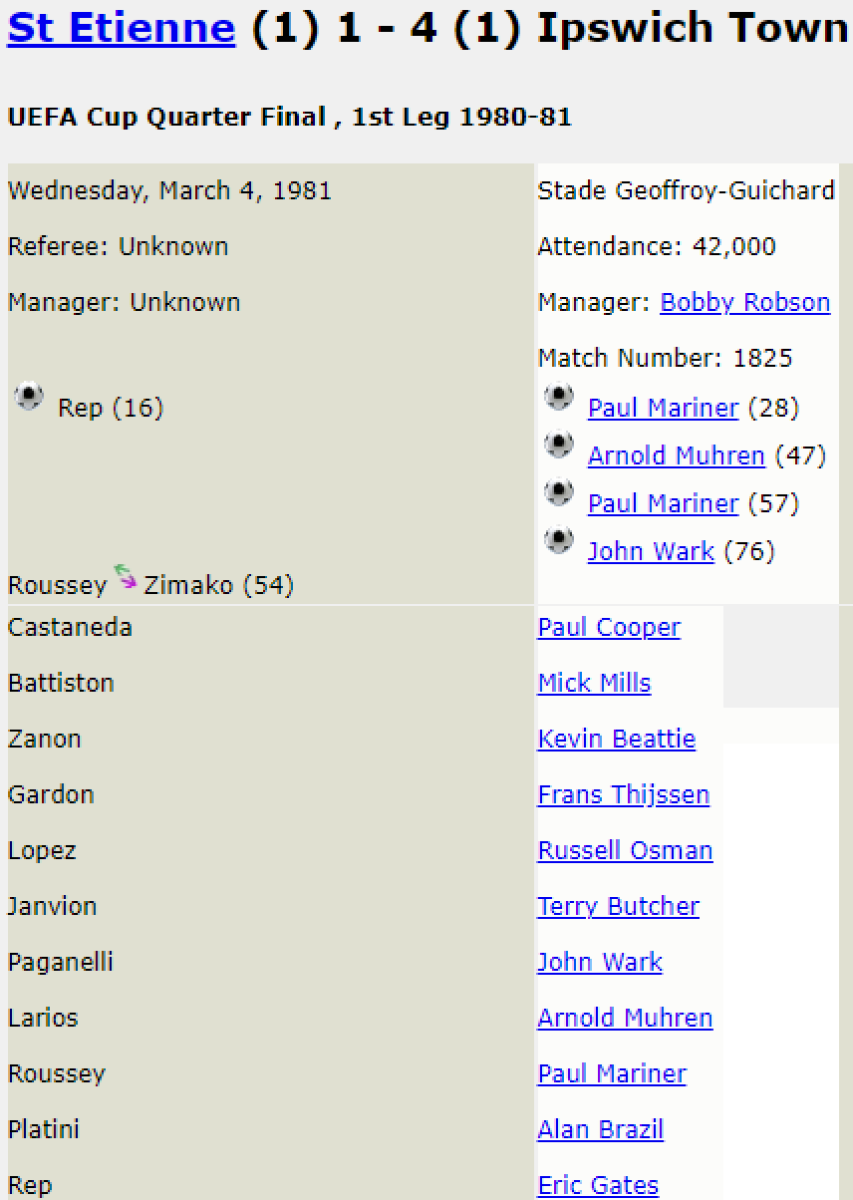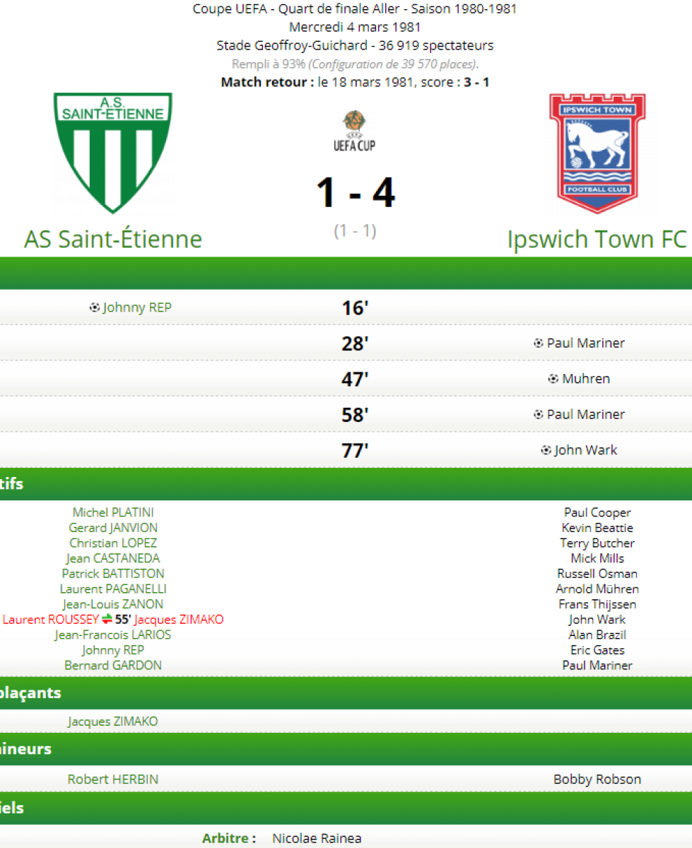 «Сент-Этьен» Сент-Этьен - «Ипсвич Таун» Ипсвич - 1:4