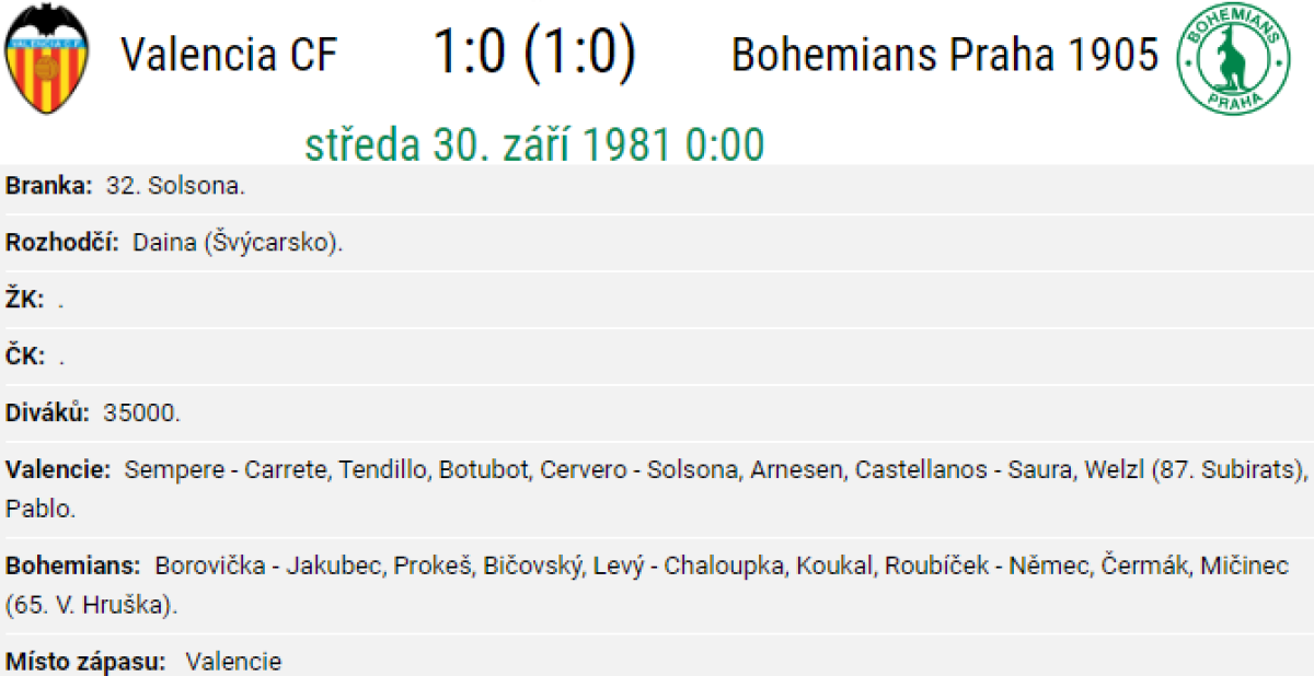 «Валенсия» Валенсия - «Богемианс-ЧКД» Прага - 1:0