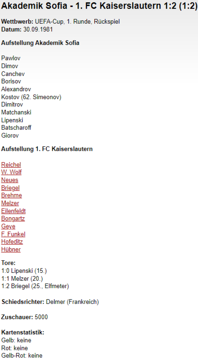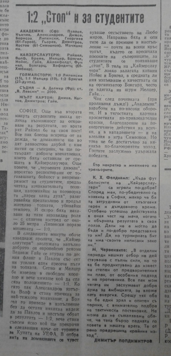 «Академик» София - «1. ФК Кайзерслаутерн» Кайзерслаутерн - 1:2