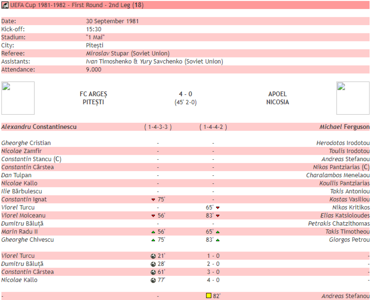 «Арджеш» Питешти - АПОЭЛ Никосия - 4:0