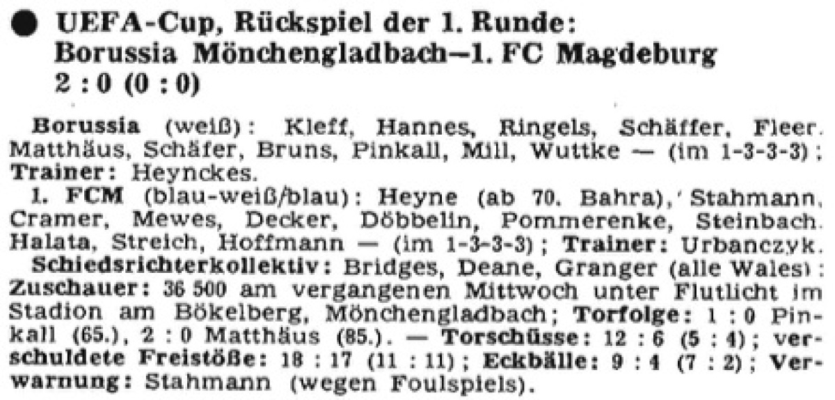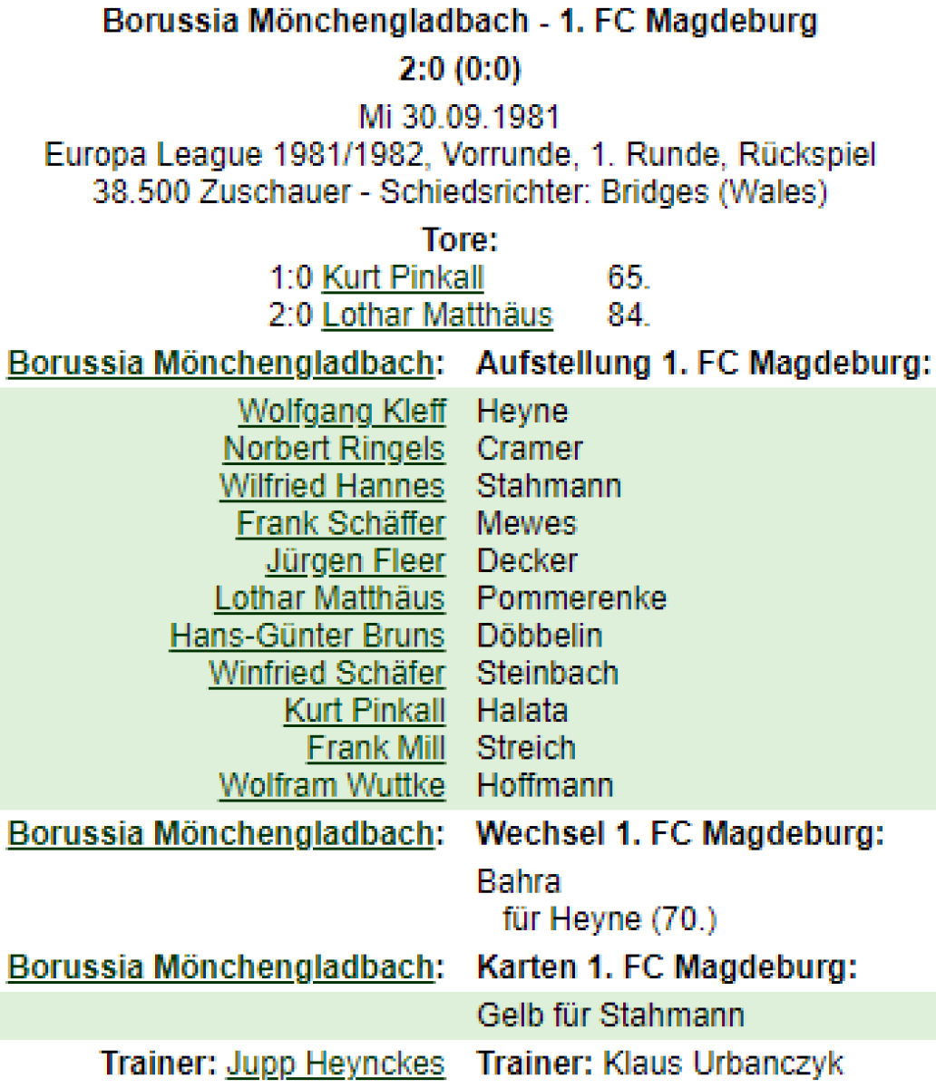 «Боруссия» Мёнхенгладбах - «1. ФК Магдебург» Магдебург - 2:0