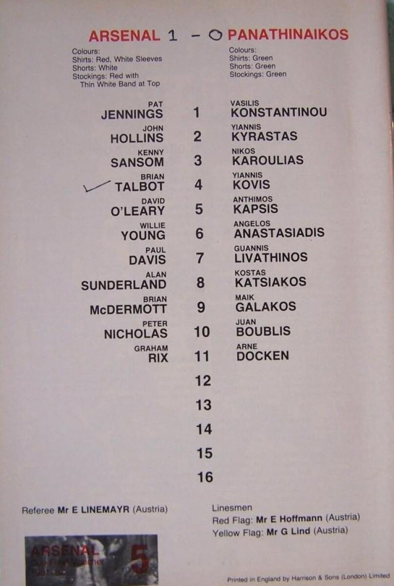 «Арсенал» Лондон - «Панатинаикос» Афины - 1:0