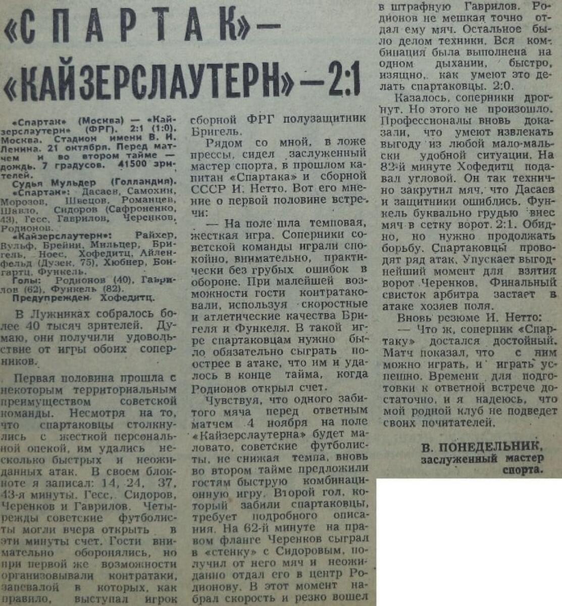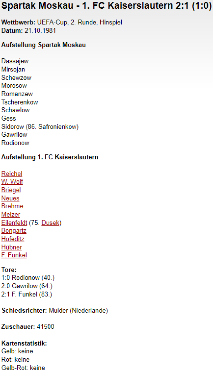 «Спартак» Москва - «1. ФК Кайзерслаутерн» Кайзерслаутерн - 2:1