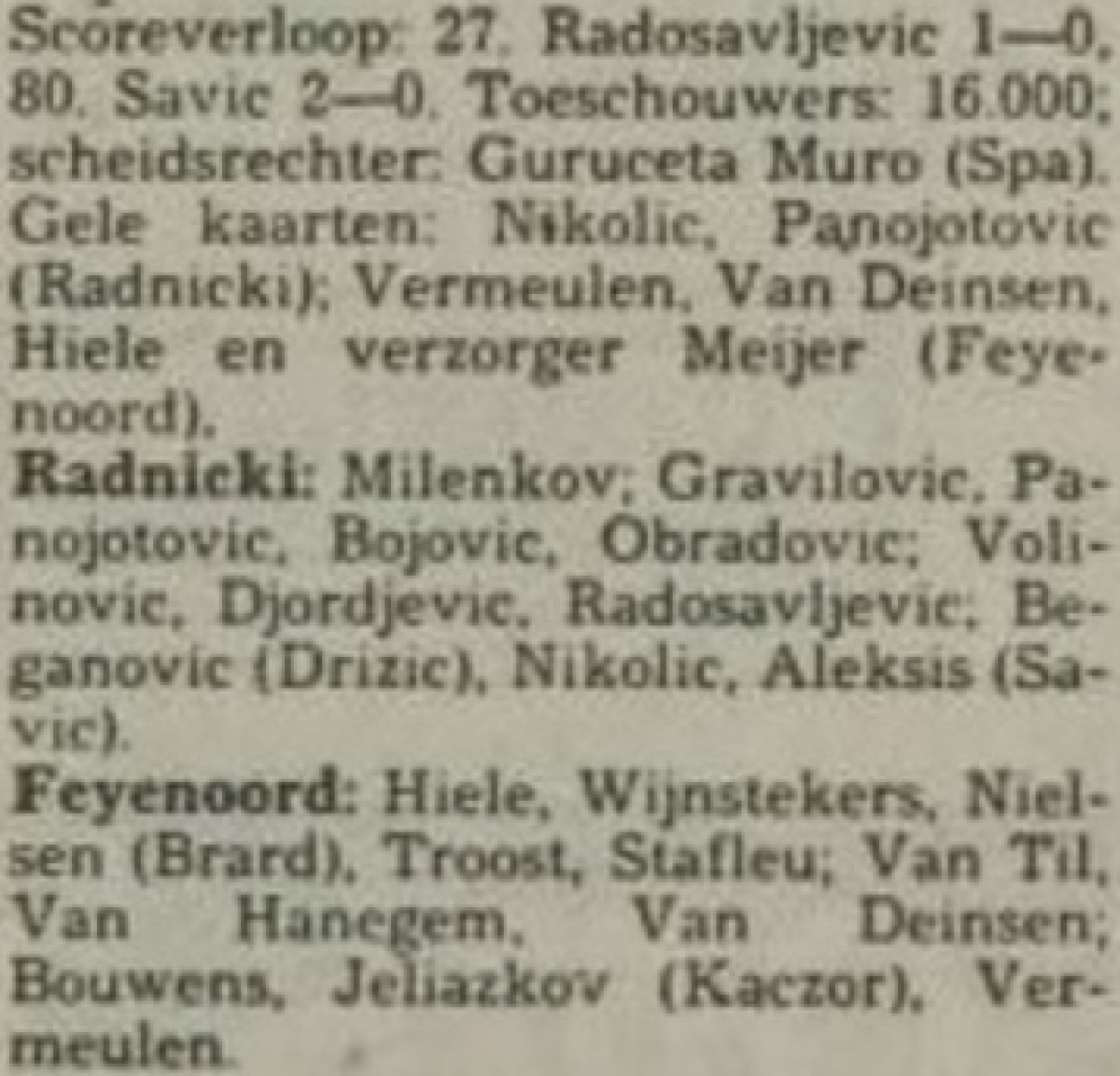 «Раднички» Ниш - «Фейеноорд» Роттердам - 2:0