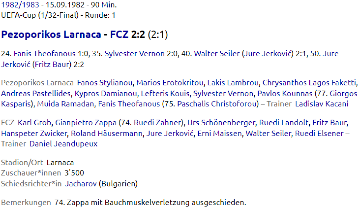 «Пезопорикос» Ларнака - «Цюрих» Цюрих - 2:2