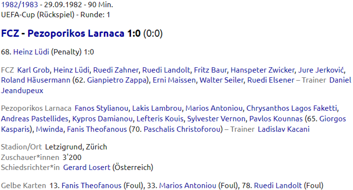 «Цюрих» Цюрих - «Пезопорикос» Ларнака - 1:0