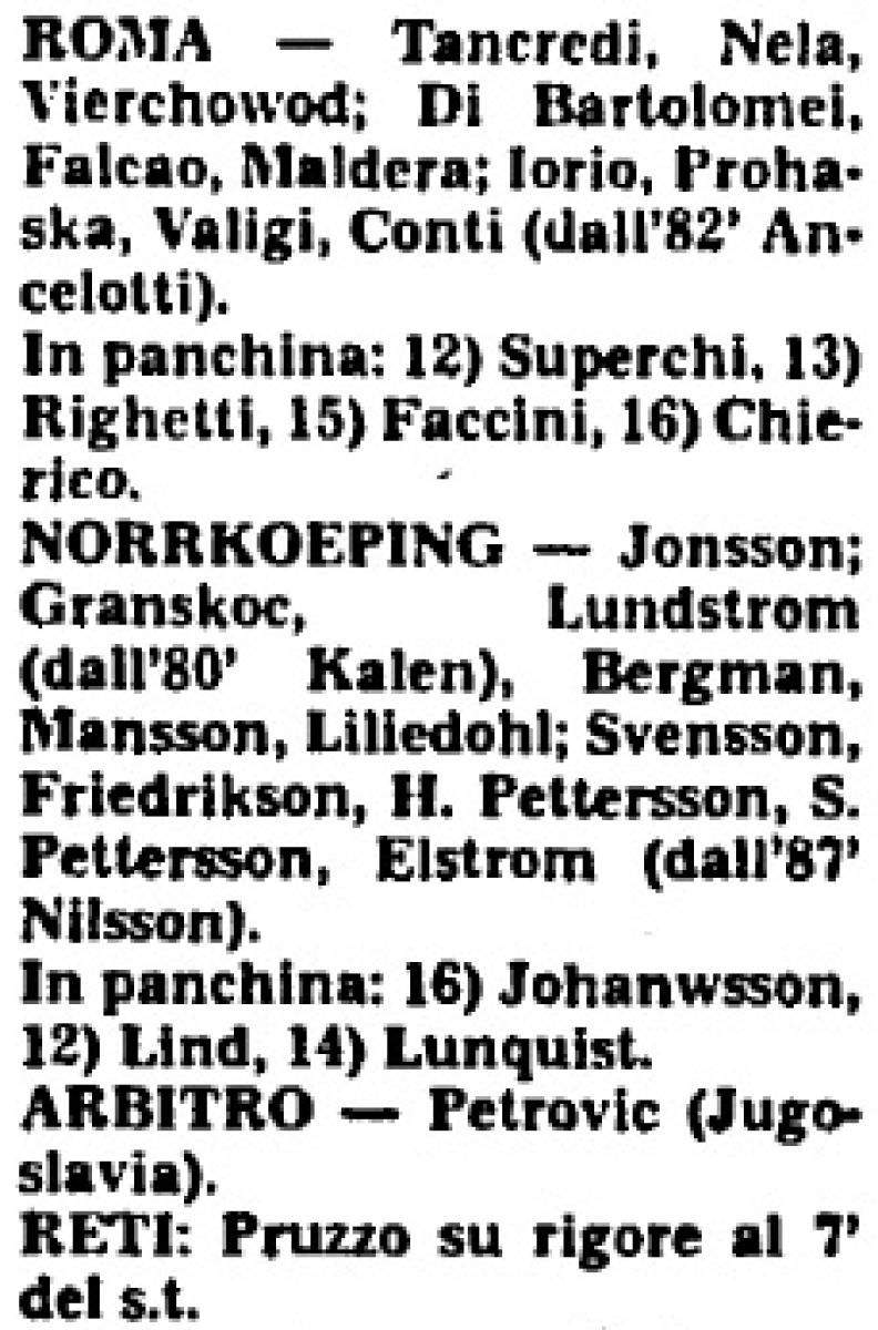 «Рома» Рим - «ИФК Норрчёпинг» Норрчёпинг - 1:0