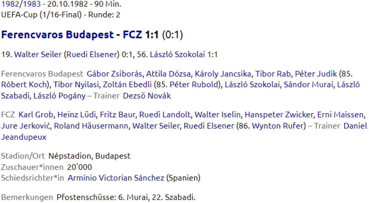 «Ференцварош» Будапешт - «Цюрих» Цюрих - 1:1