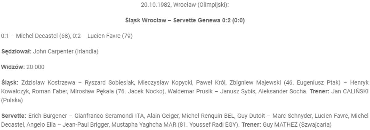 «Шлёнск» Вроцлав - «Серветт» Женева - 0:2