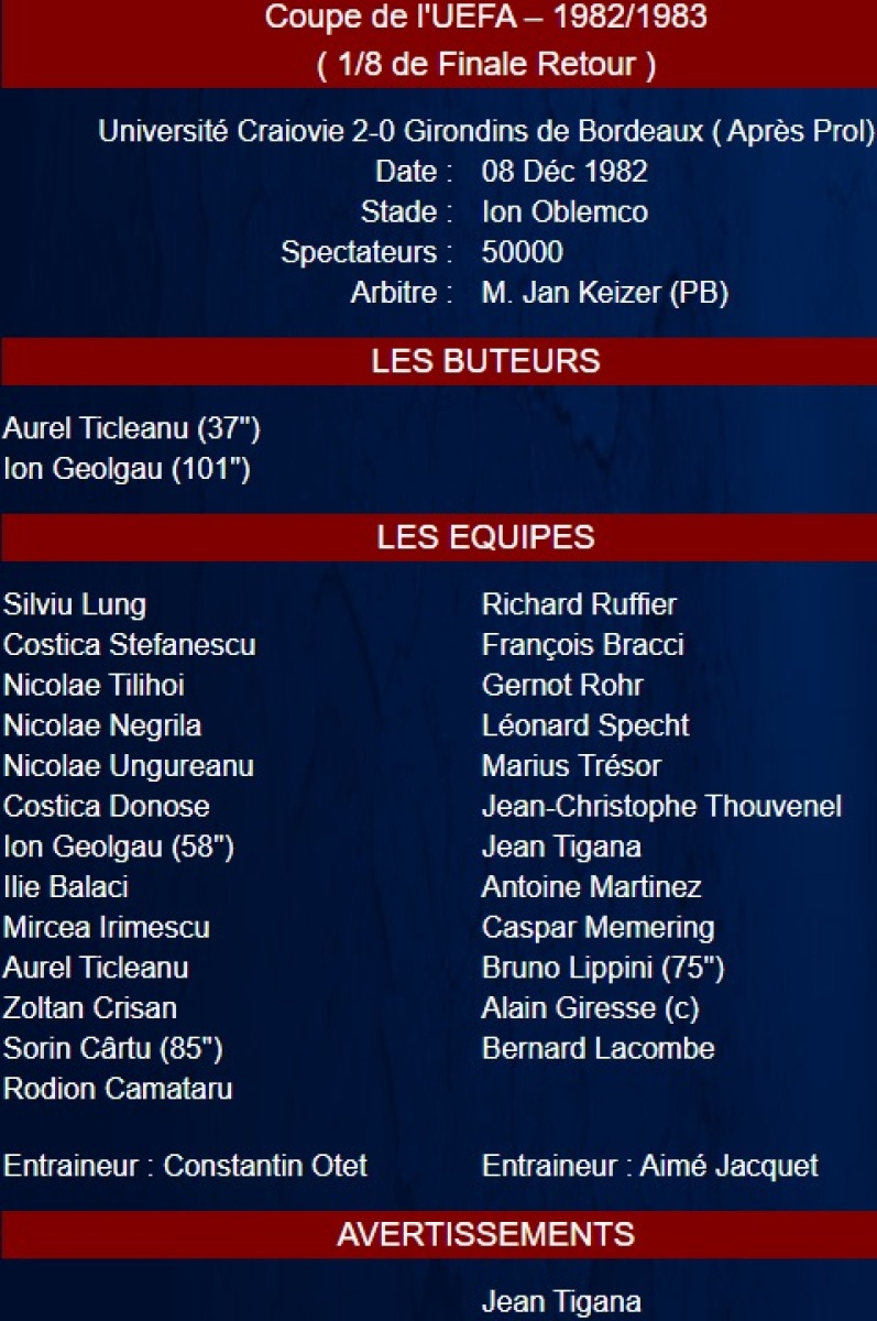 «Университатя» Крайова - «Жиронден де Бордо» Бордо - 2:0