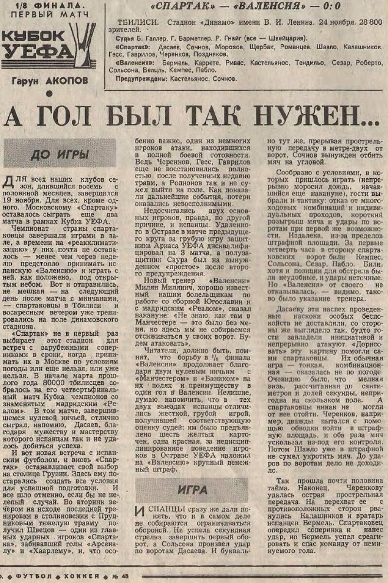 «Спартак» Москва - «Валенсия» Валенсия - 0:0