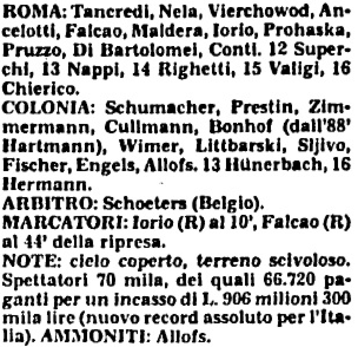 «Рома» Рим - «1. ФК Кёльн» Кёльн - 2:0
