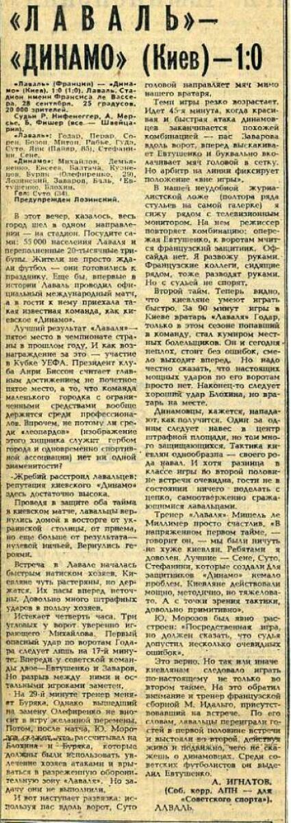 «Стад Лаваль» Лаваль - «Динамо» Киев - 1:0