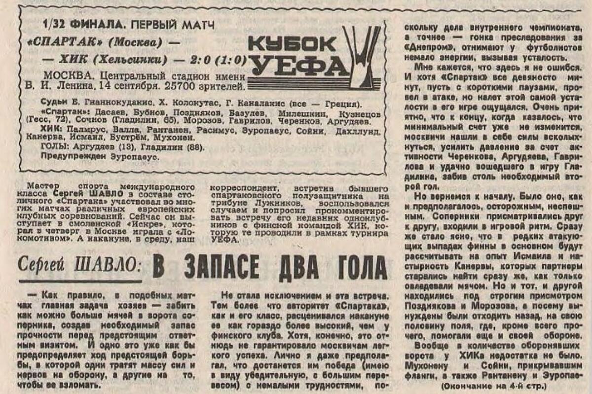 «Спартак» Москва - ХИК Хельсинки - 2:0
