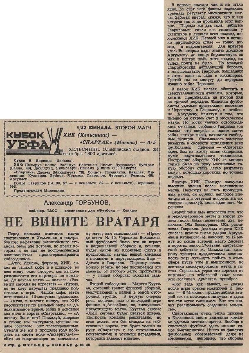 ХИК Хельсинки - «Спартак» Москва - 0:5