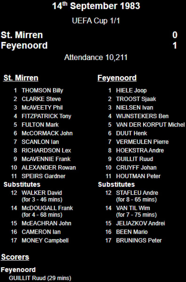 «Сент-Миррен» Пейсли - «Фейеноорд» Роттердам - 0:1