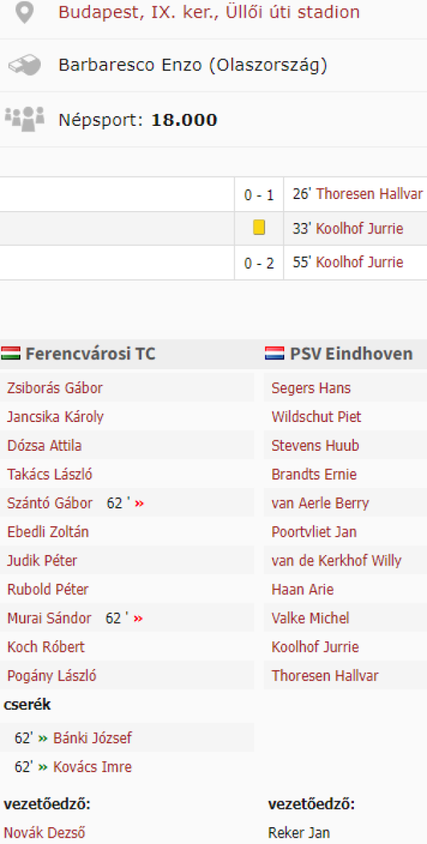 «Ференцварош» Будапешт - ПСВ Эйндховен - 0:2