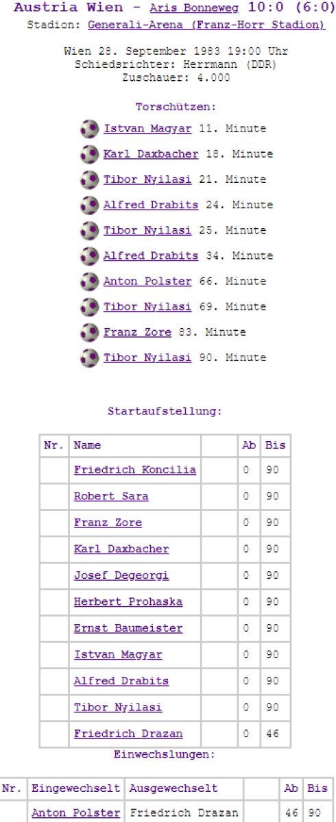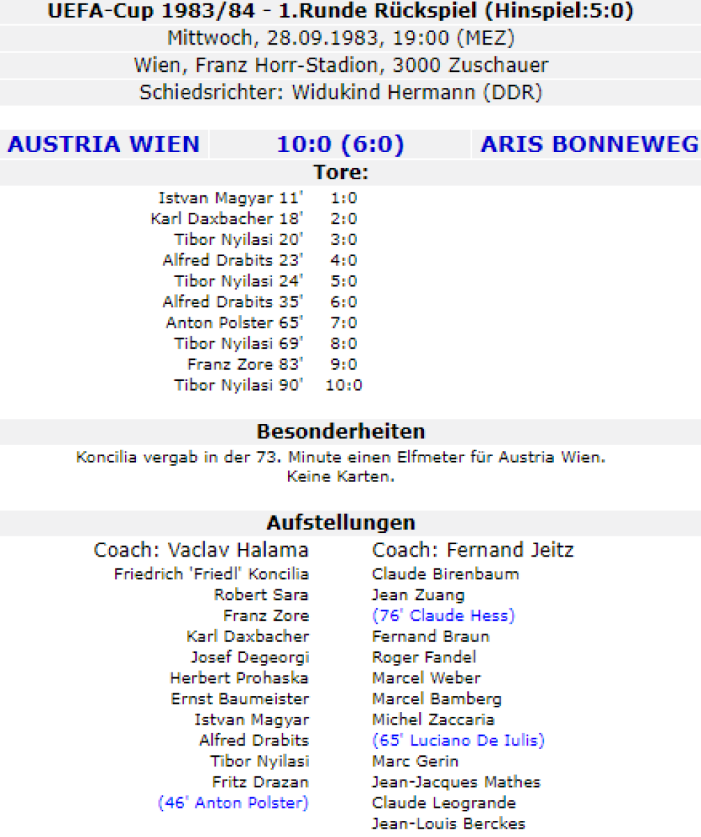 «Аустрия» Вена - «Арис» Люксембург - 10:0