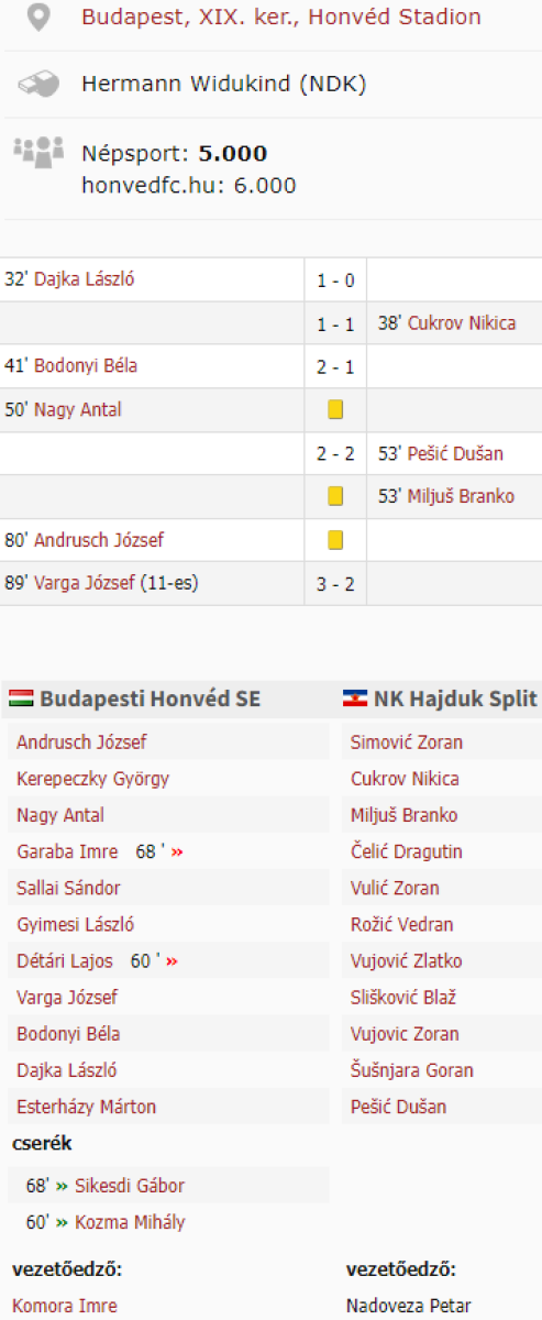«Гонвед» Будапешт - «Хайдук» Сплит - 3:2