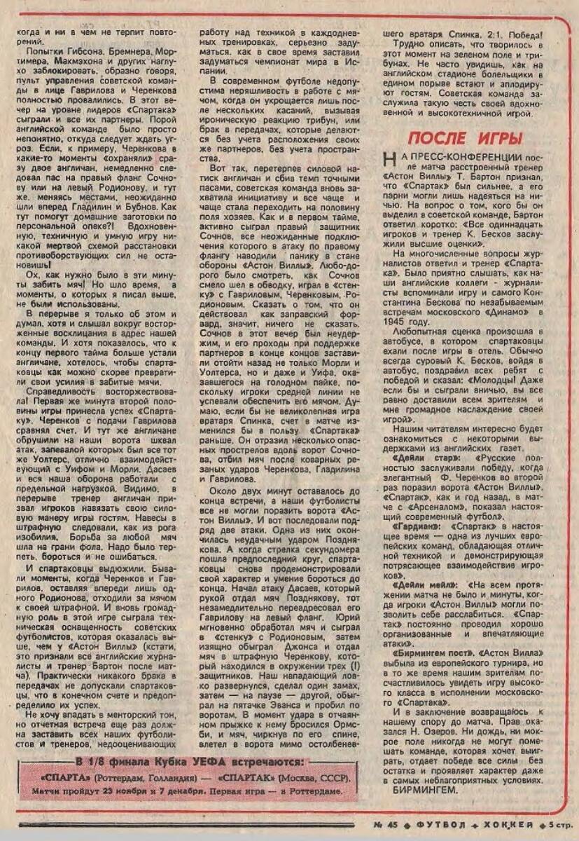 «Астон Вилла» Бирмингем - «Спартак» Москва - 1:2