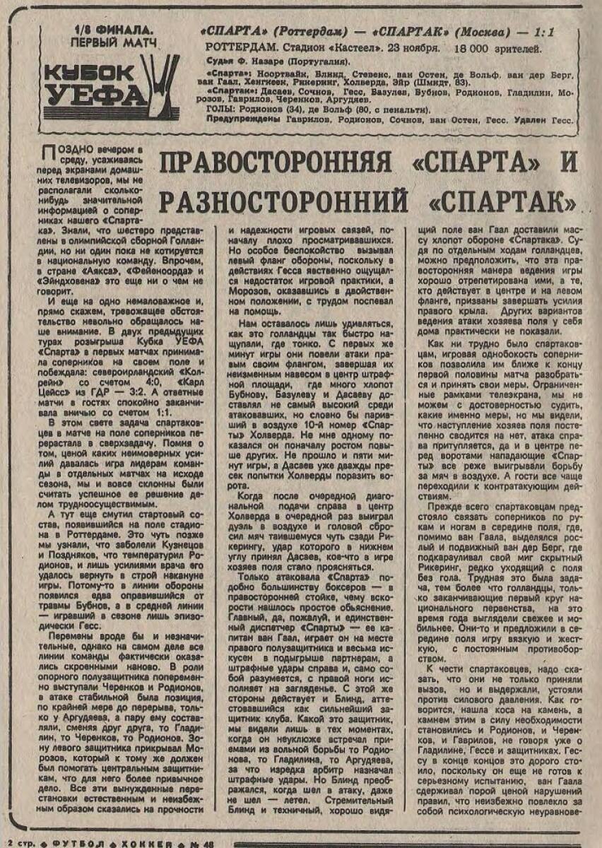 «Спарта» Роттердам - «Спартак» Москва - 1:1