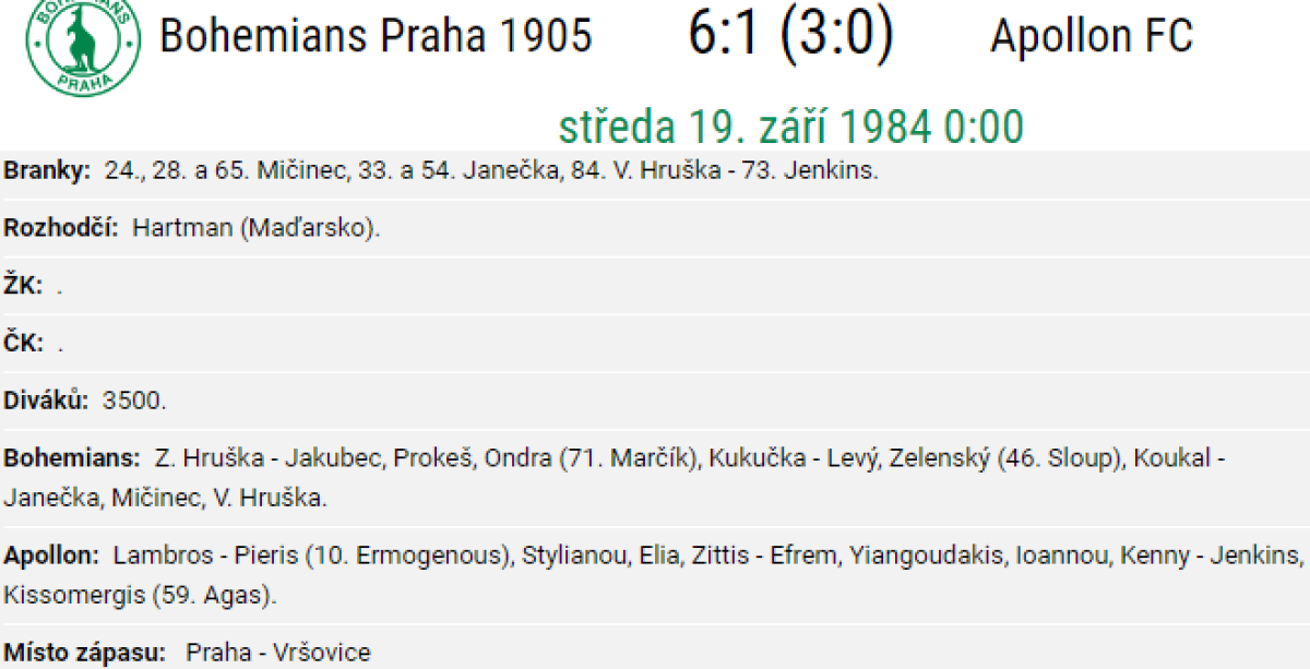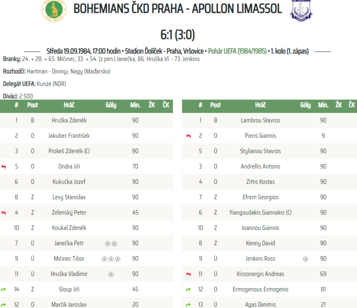«Богемианс-ЧКД» Прага - «Аполлон» Лимасол - 6:1