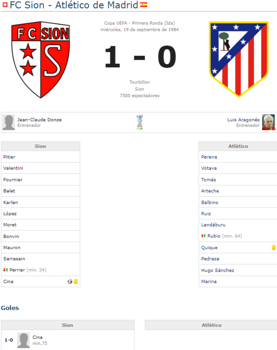 «Сьон» Сьон - «Атлетико» Мадрид - 1:0