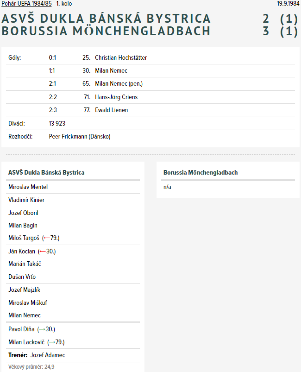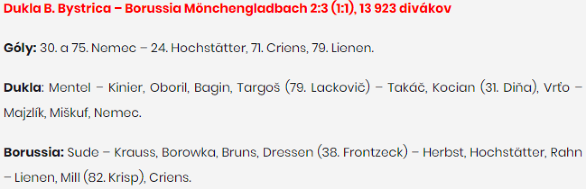 «Дукла» Банска-Бистрица - «Боруссия» Мёнхенгладбах - 2:3