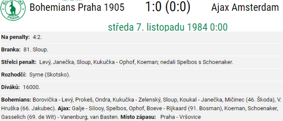 «Богемианс-ЧКД» Прага - «Аякс» Амстердам - 1:0