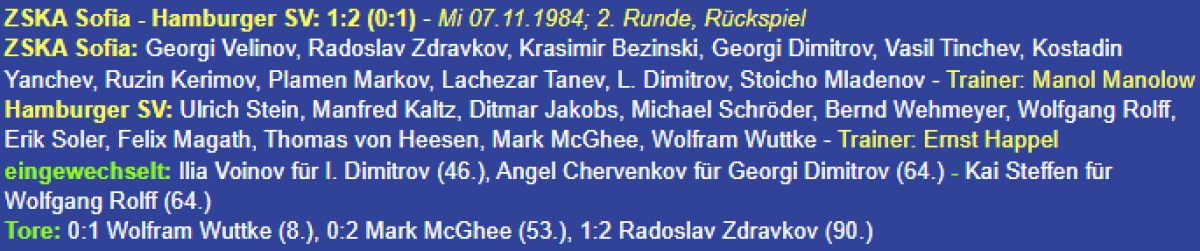 «ЦСКА Септемврийско Знаме» София - «Гамбургер» Гамбург - 1:2
