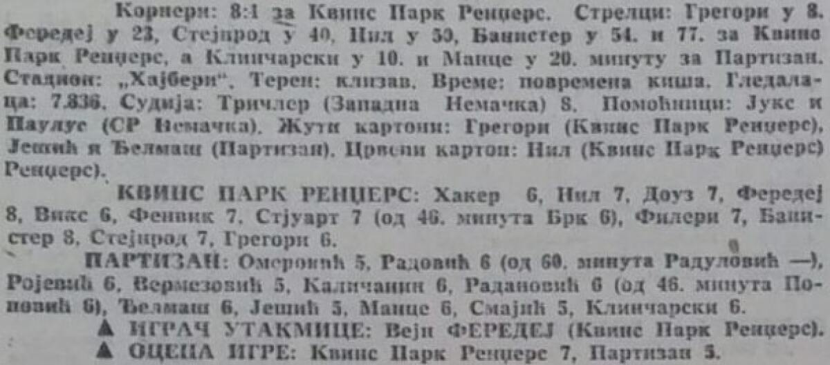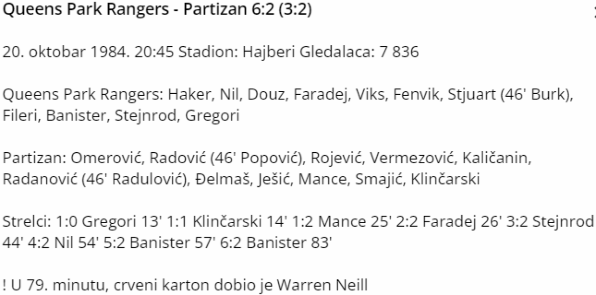«Куинз Парк Рейнджерс» Лондон - «Партизан» Белград - 6:2