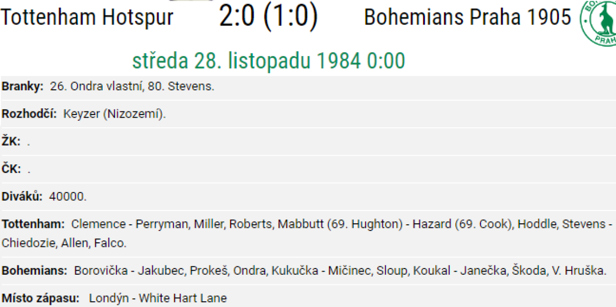 «Тоттенхэм Хотспур» Лондон - «Богемианс-ЧКД» Прага - 2:0