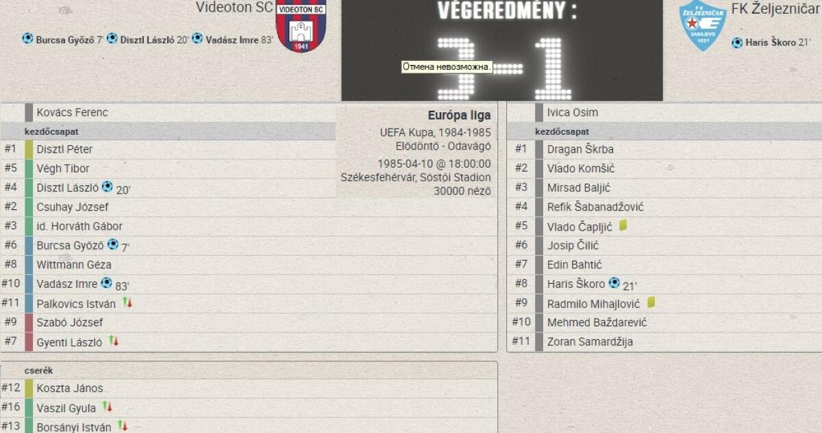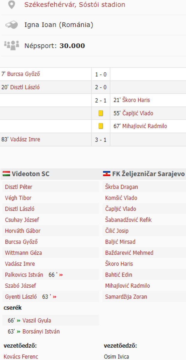 «Видеотон» Секешфехервар - «Железничар» Сараево - 3:1