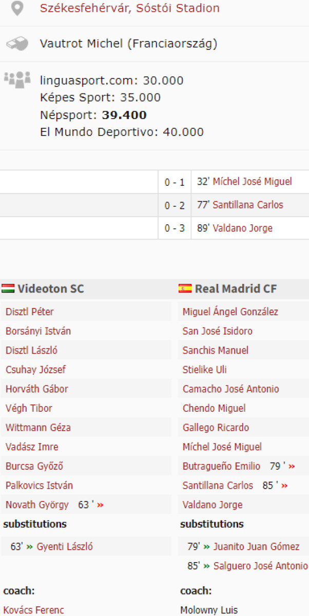 «Видеотон» Секешфехервар - «Реал» Мадрид - 0:3