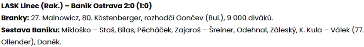 «Линцер АСК» Линц - «Баник» Острава - 2:0