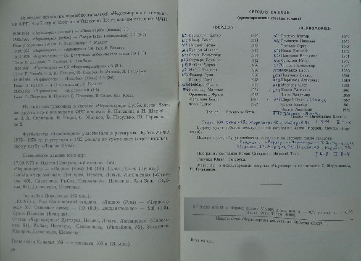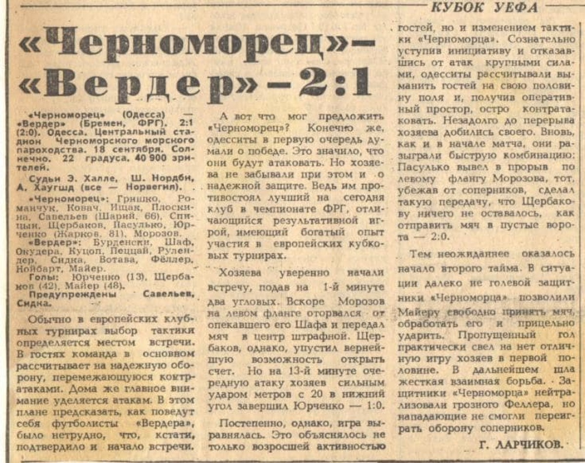 «Черноморец» Одесса - «Вердер» Бремен - 2:1