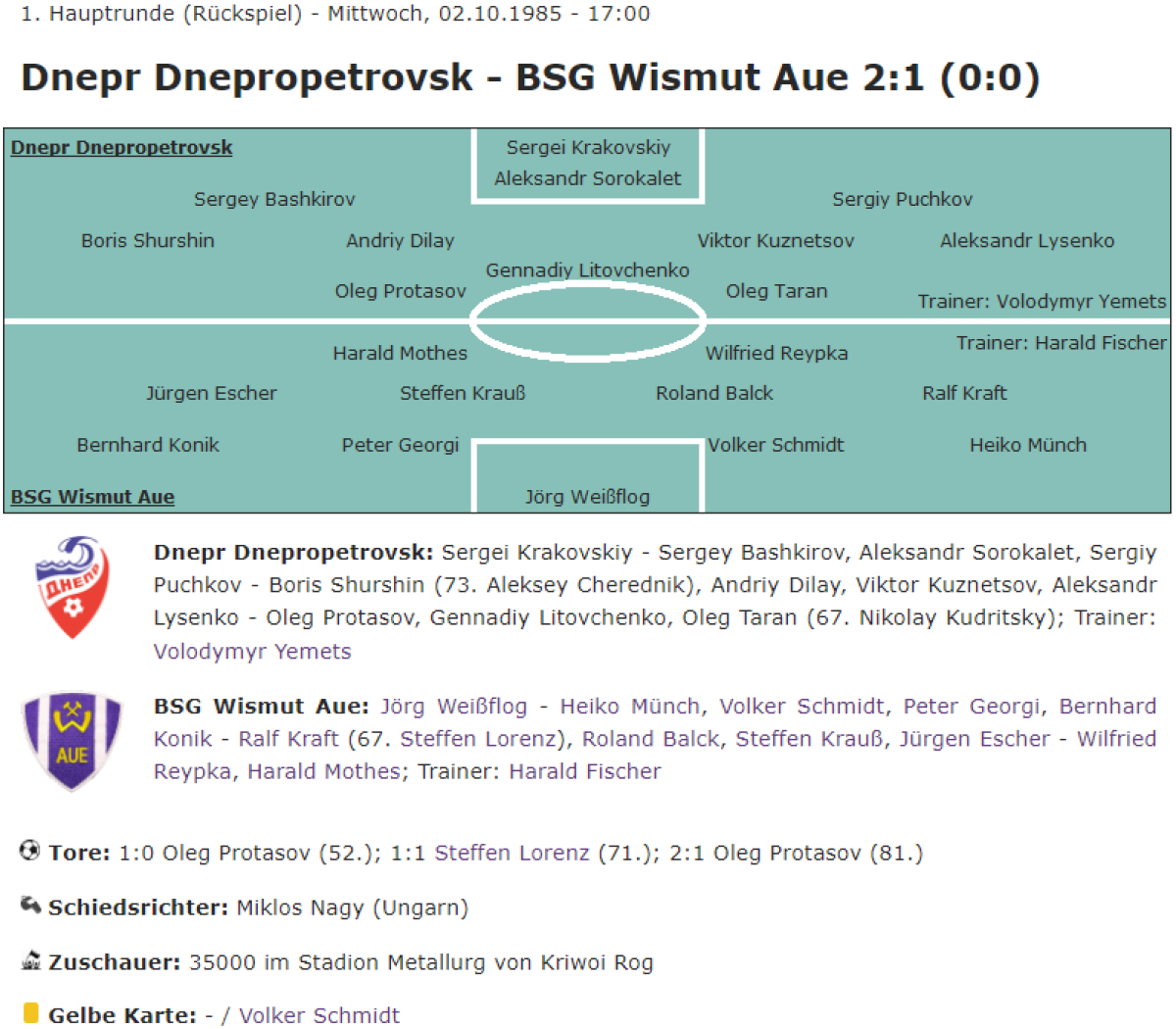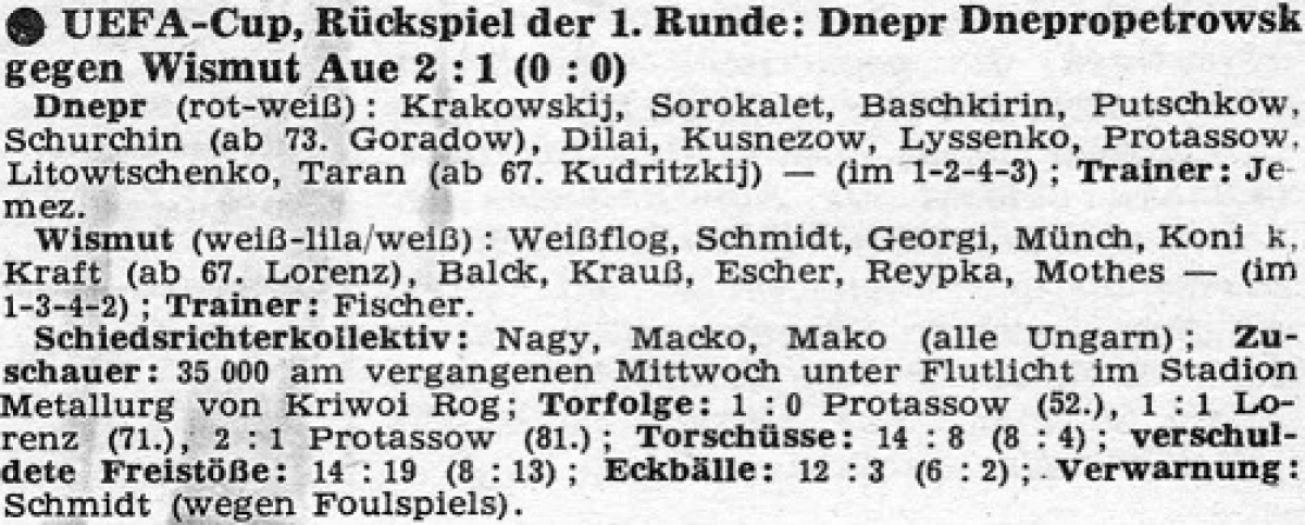 «Днепр» Днепропетровск - «Висмут» Ауэ - 2:1