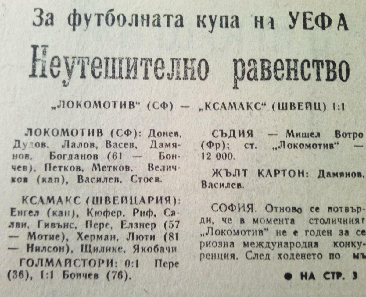 «Локомотив» София - «Ксамакс» Нёвшатель - 1:1