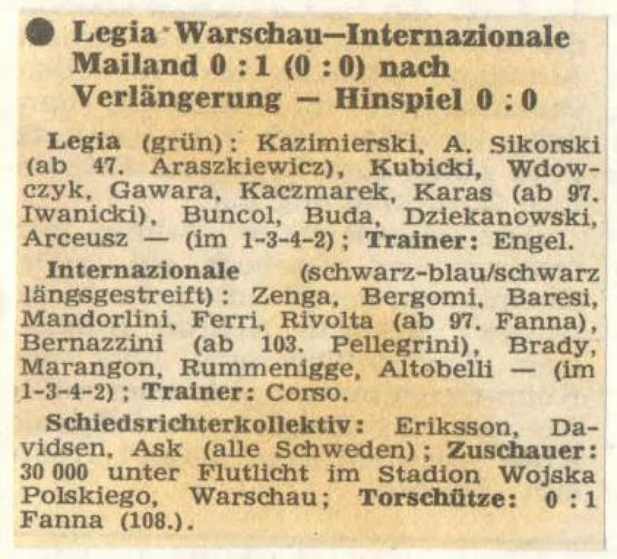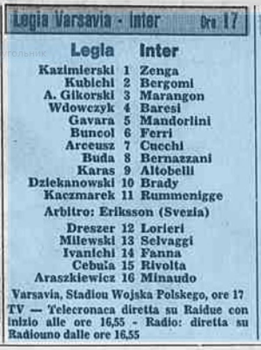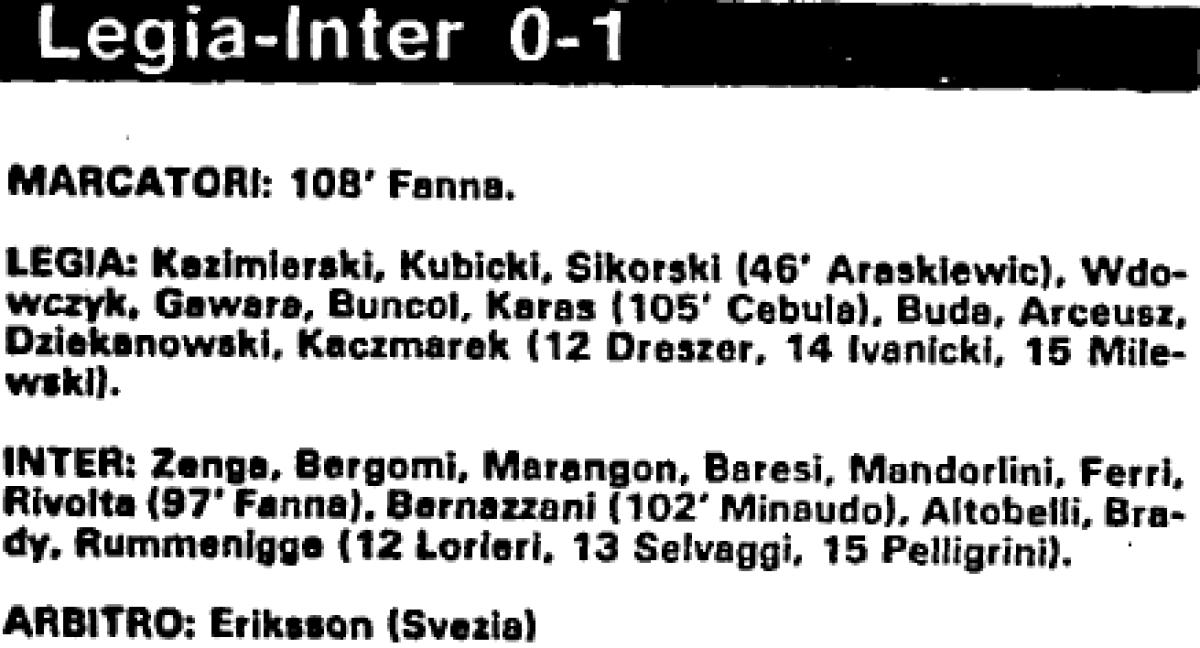 «ЦВСК Легия» Варшава - «Интернационале» Милан - 0:1