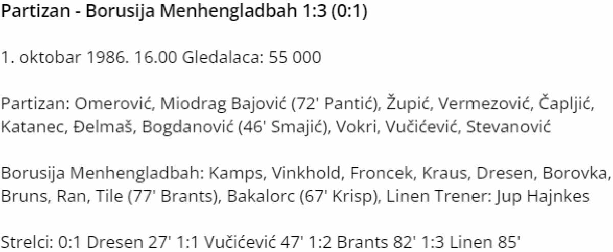 «Партизан» Белград - «Боруссия» Мёнхенгладбах - 1:3