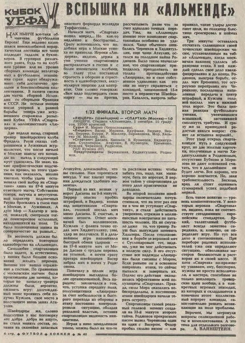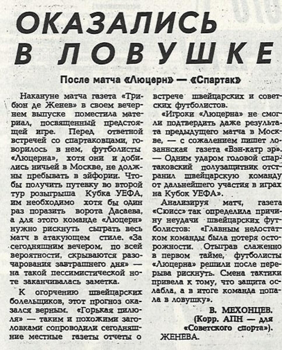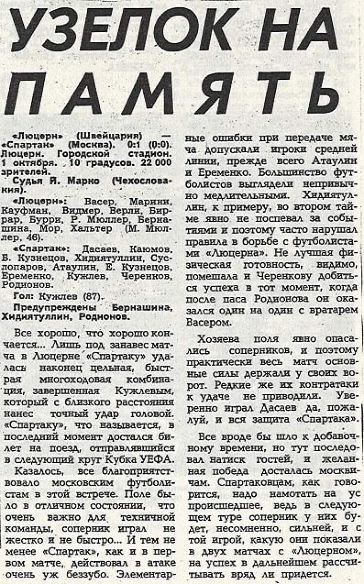 «Люцерн» Люцерн - «Спартак» Москва - 0:1