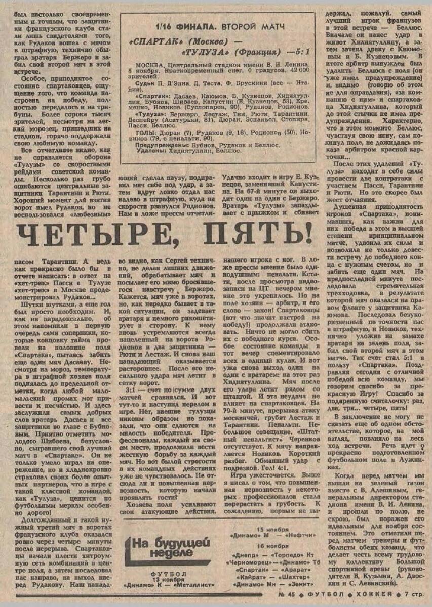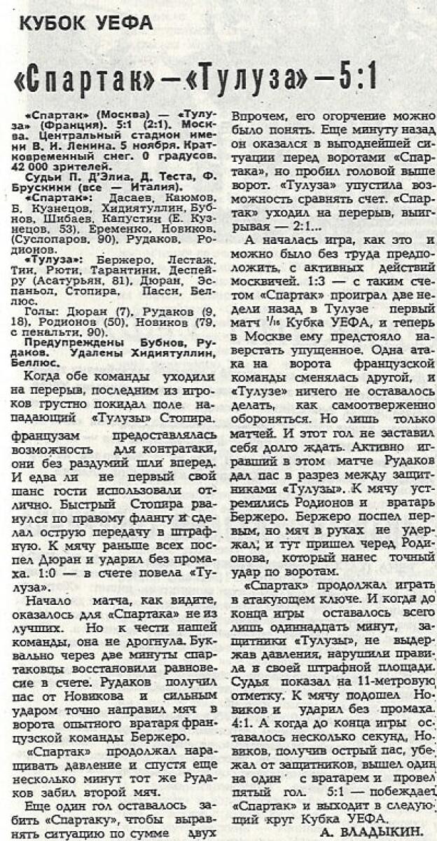 «Спартак» Москва - «Тулуза» Тулуза - 5:1