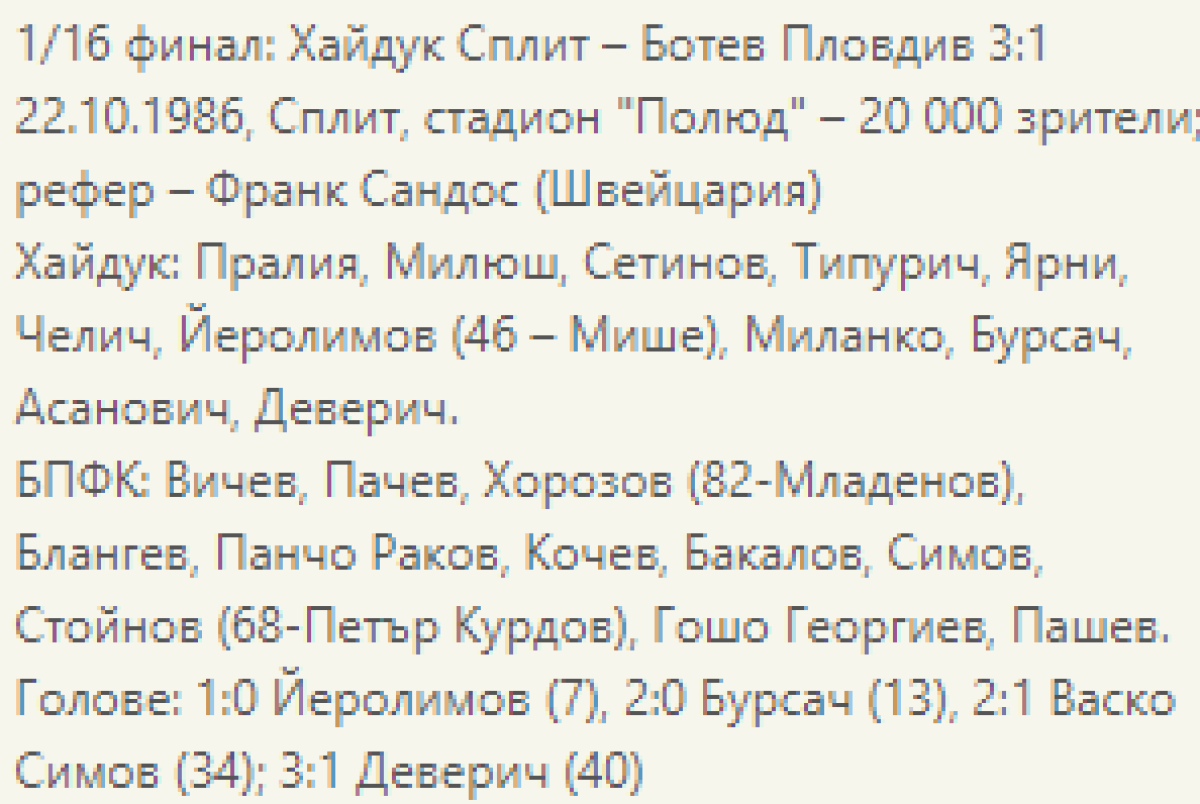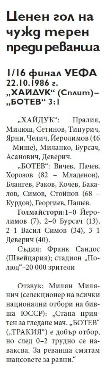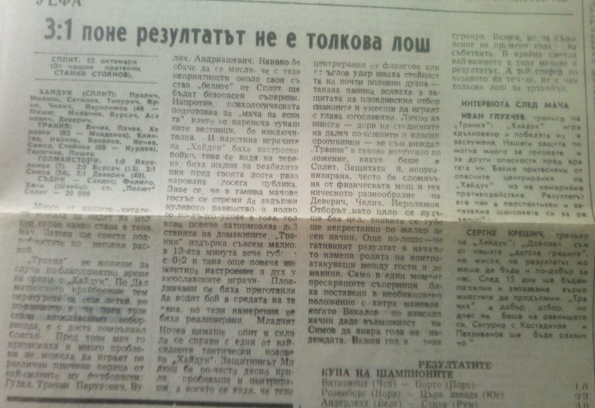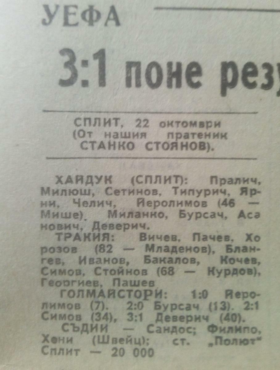 «Хайдук» Сплит - «Тракия» Пловдив - 3:1