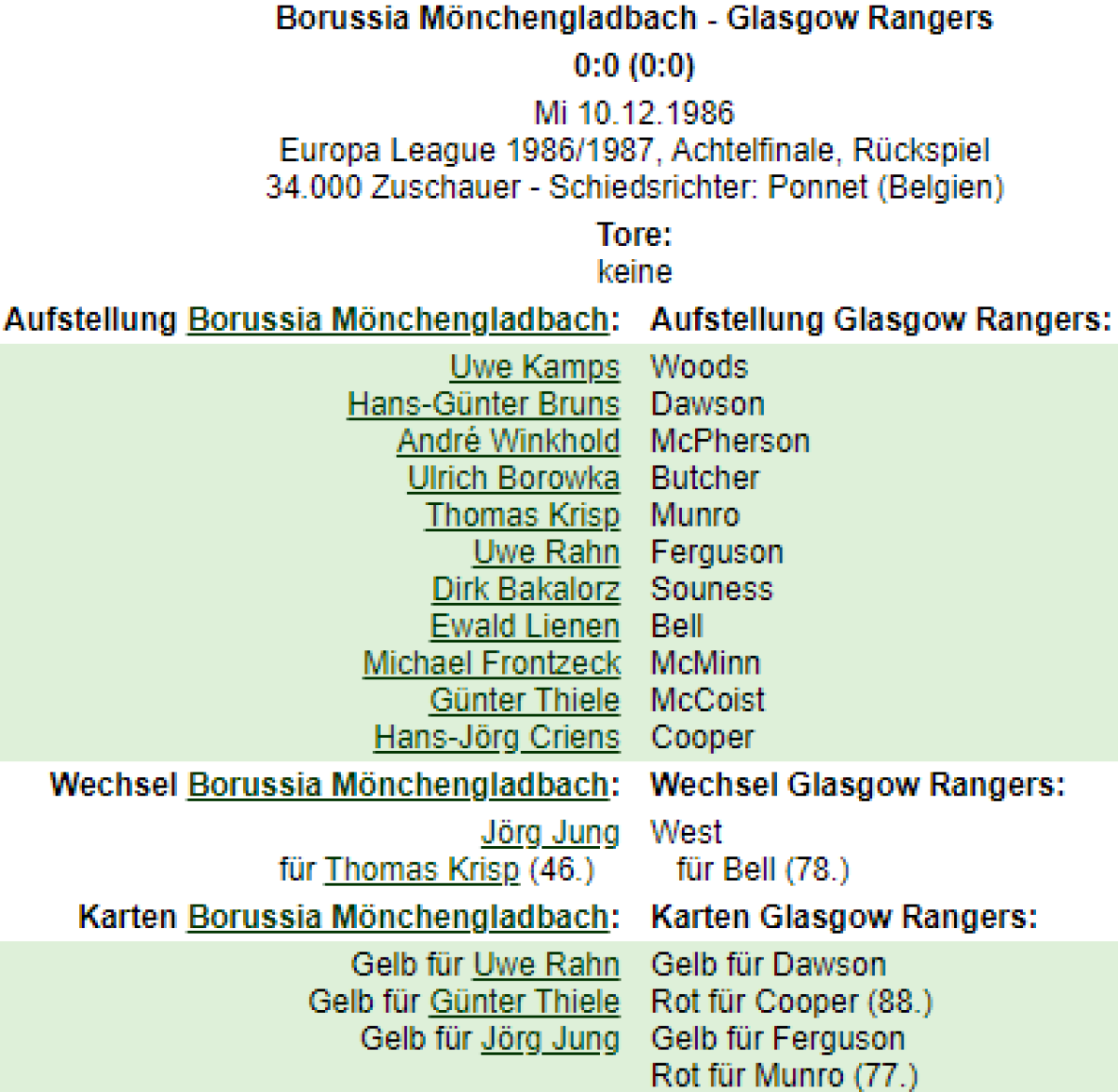 «Боруссия» Мёнхенгладбах - «Рейнджерс» Глазго - 0:0