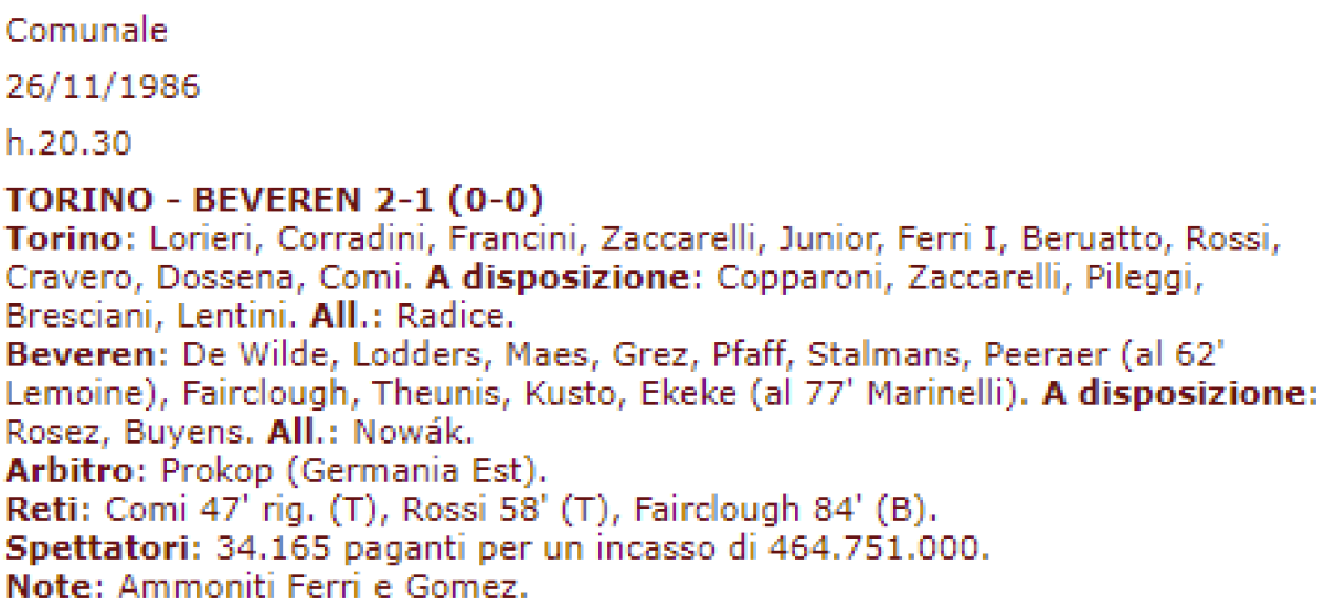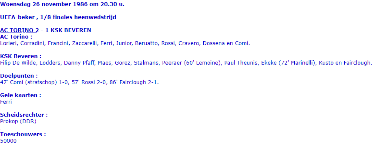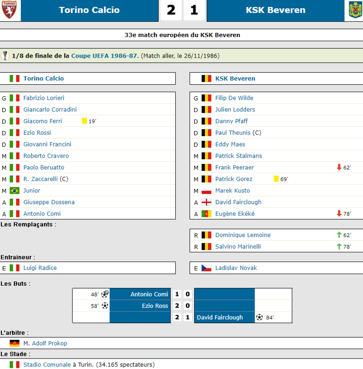 «Торино Кальчо» Турин - «Беверен» Беверен - 2:1
