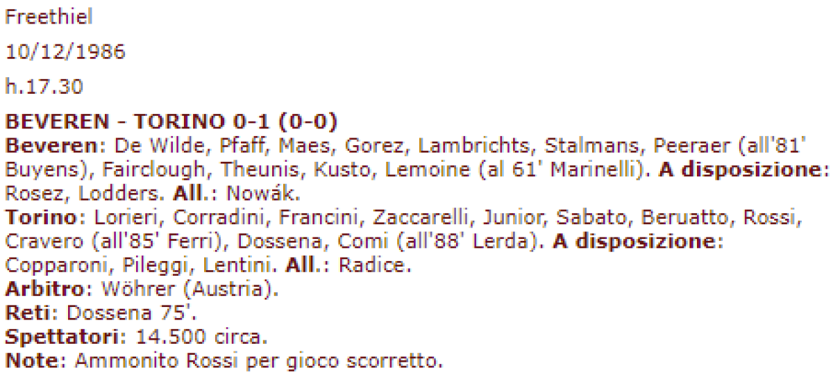 «Беверен» Беверен - «Торино Кальчо» Турин - 0:1