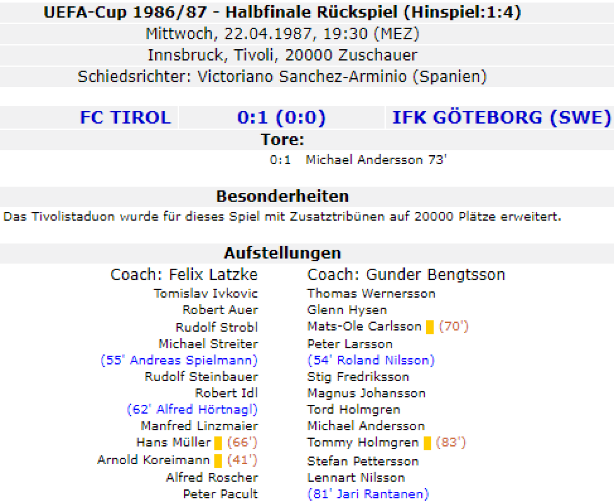 «Сваровски-Тироль» Инсбрук - «Гётеборг» Гётеборг - 0:1