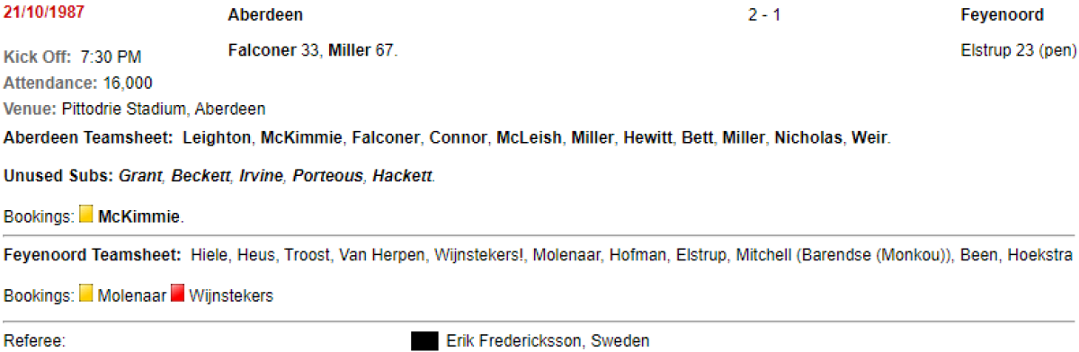 «Абердин» Абердин - «Фейеноорд» Роттердам - 2:1
