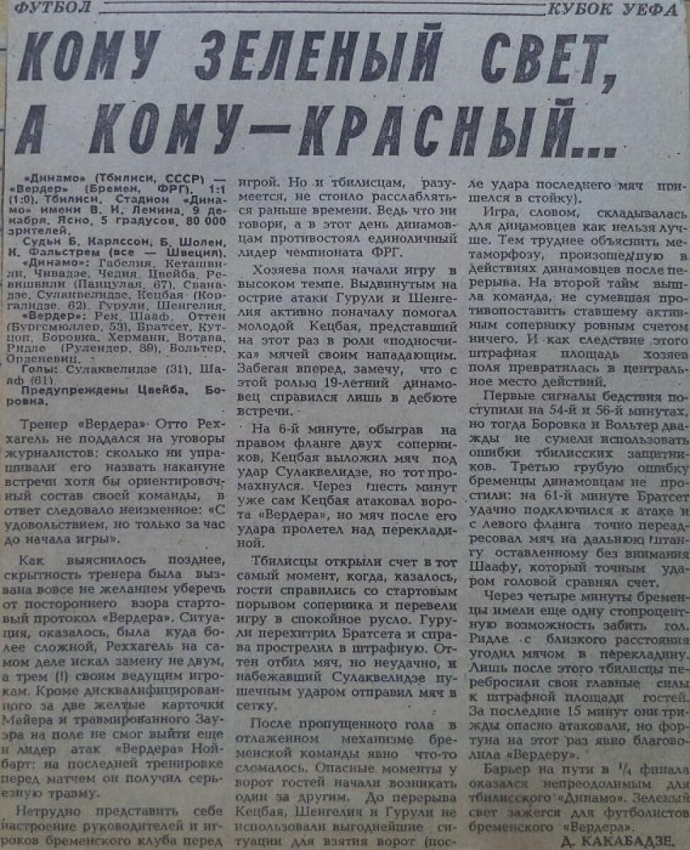 «Динамо» Тбилиси - «Вердер» Бремен - 1:1
