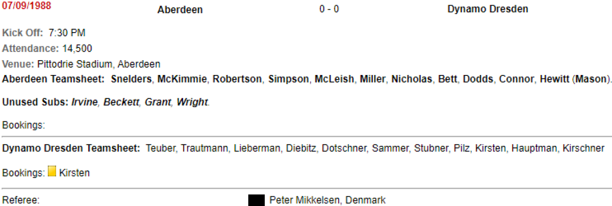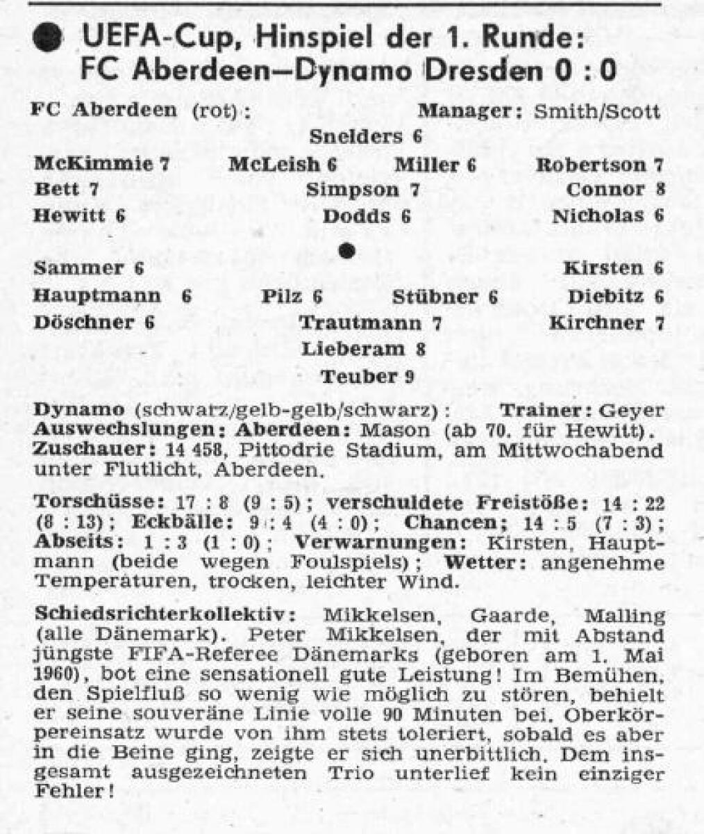 «Абердин» Абердин - «Динамо» Дрезден - 0:0